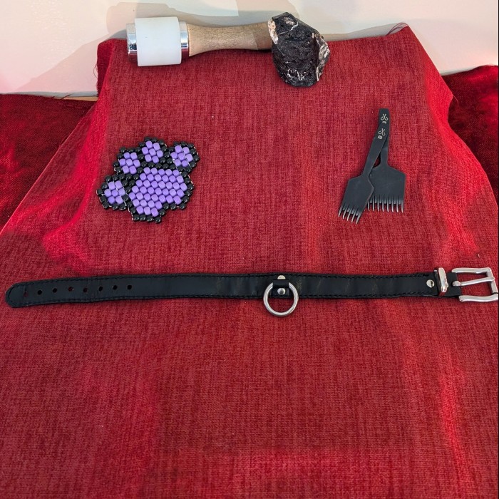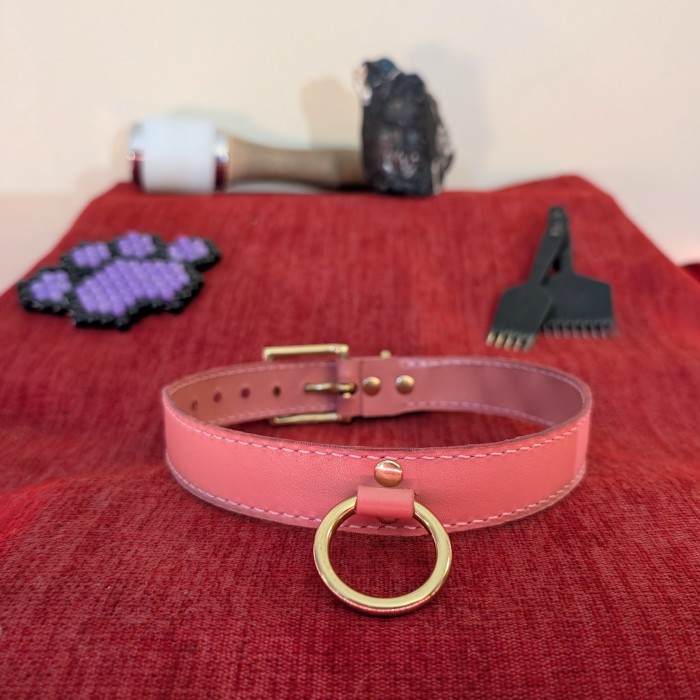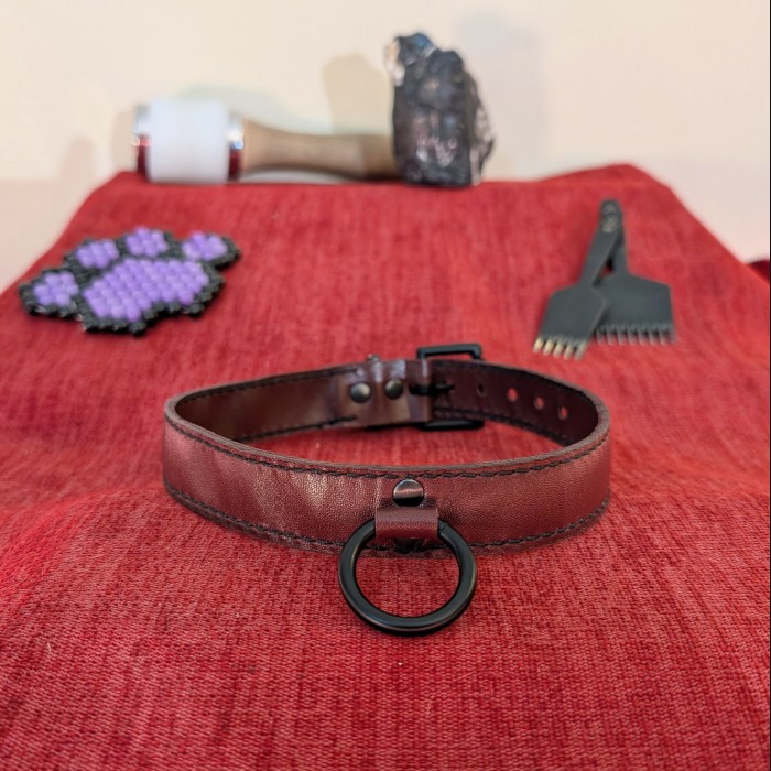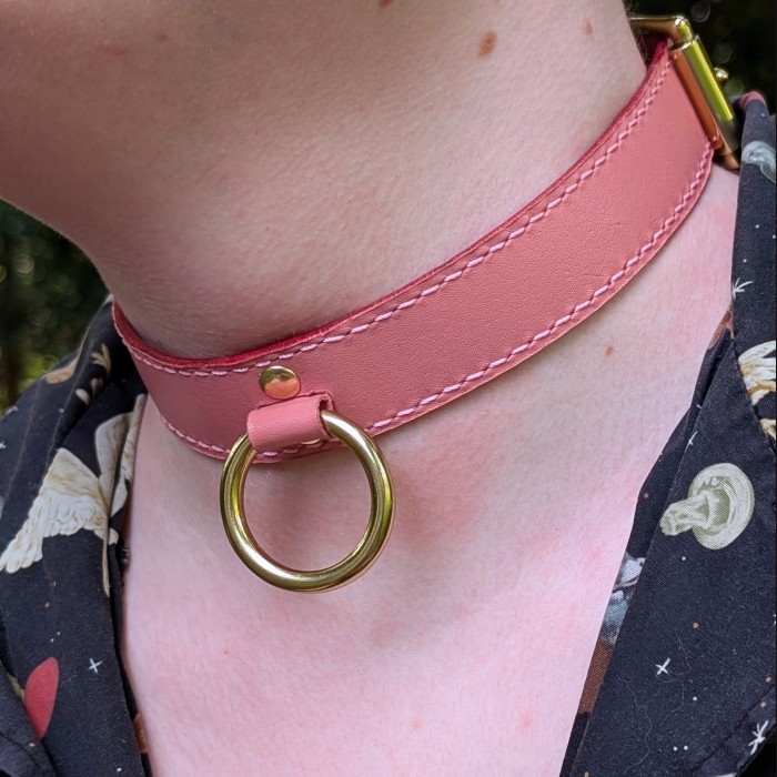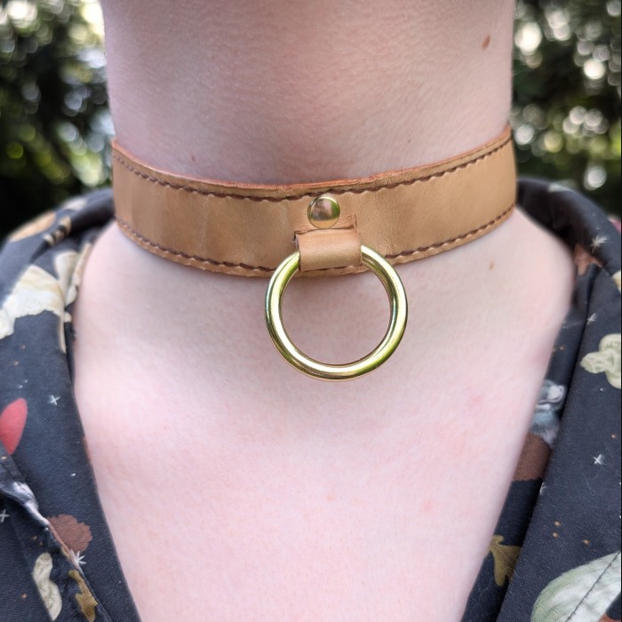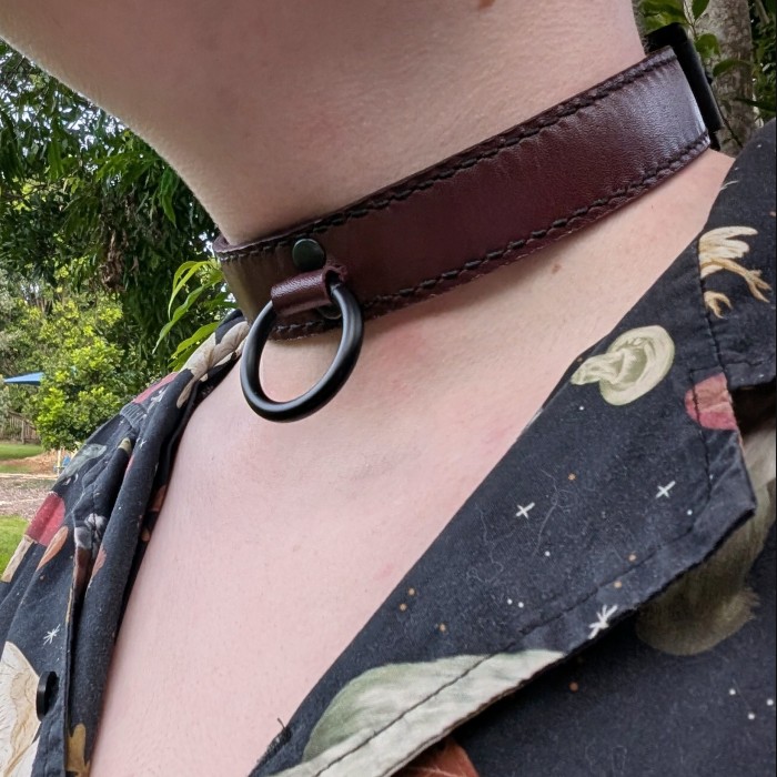 The non-black versions of this design are limited edition!! I won't be restocking them once they all sell. The natural and jade coloured collars are made from uncoated kangaroo hide, so they will darken significantly with age. This process is known as a patina, and is a natural part of breaking in uncoated leather. More information and photos of a piece that has developed a good patina can be found on my Instagram story highlights.