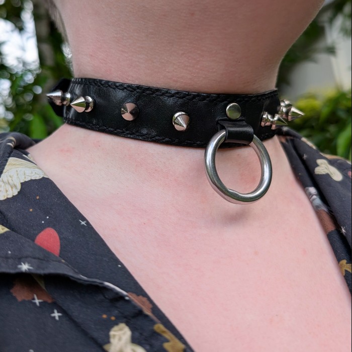The spiked o-ring collar is comfortable and intimidating, and its perfect for attaching a leash or a dog tag to so your pet remembers who they belong to.
